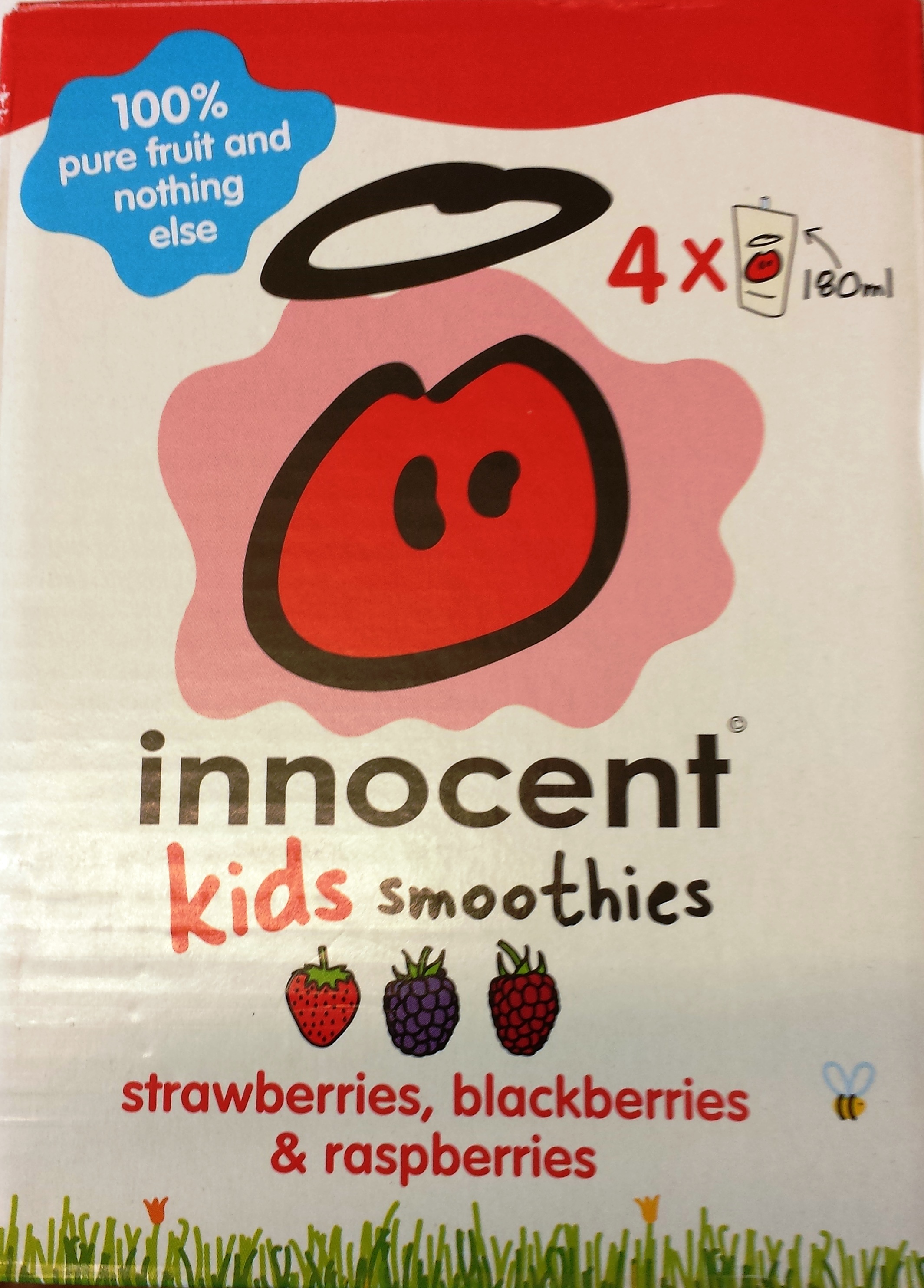 Strawberries, blackberries and rasberries deklareras klart och tydligt på framsidan på Innocents förpackningar.20140717_111058 Att det mesta är äpple, apelsin, banan och druvor i smothien och endast 3/4 av en jordgubbe, 2 björnbär och 1 hallon förväntar jag mig inte.